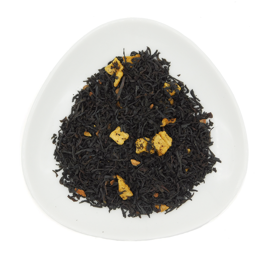 Bobbin’ for Apples Tea has everything you love about autumn: rich black tea, tart dried apple, warm cinnamon bark and bewitching caramel apple. These bright, warm flavors are sure to put a smile on your face even on the gloomiest of days. Add a splash of milk (or your favorite non-dairy alternative), a pinch of sugar and you have a fall dessert in a mug. Black tea naturally contains caffeine. No additional caffeine has been added.