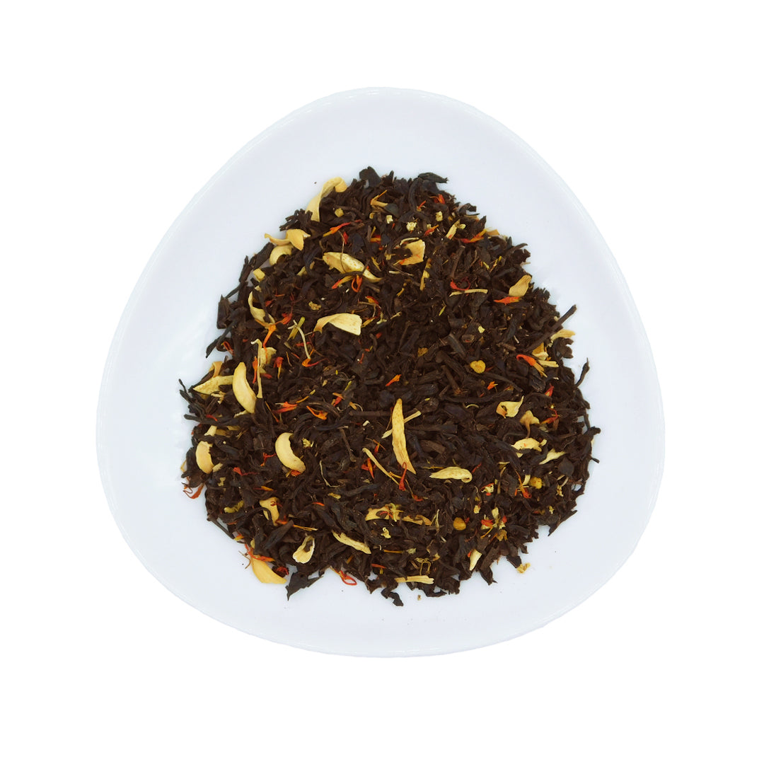 Passion Peach Tea is a complex blend of black tea, botanicals, and flavorings. This is the strongest fruit flavored tea we offer. The flavor is composed of peach, passion nectar, and mangos with citrus aromatics. Great as an iced tea or served hot with dessert. Black tea naturally contains caffeine. No additional caffeine has been added.